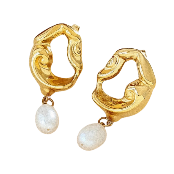 Add a playful touch to your look with these 18k gold-plated abstract hoop earrings featuring a delicate pearl drop. Lightweight and non-tarnish, they offer lasting shine and charm, making them perfect for everyday wear or special occasions. Their dainty design stands out as a fun statement accessory that complements any outfit effortlessly.