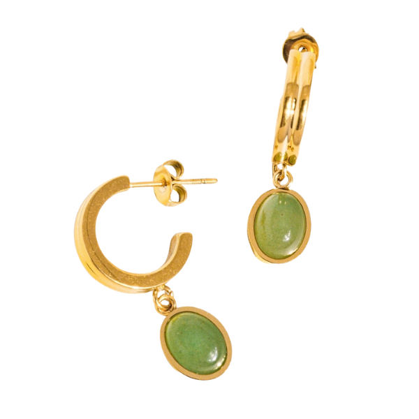 These Green Stone Charm Hoop Earrings add a playful yet delicate touch to any outfit. Their charming green stones bring a fresh pop of color, making them perfect for everyday wear or special occasions. Lightweight and dainty, they’re designed to be noticed without overwhelming your look, effortlessly elevating your style with a fun statement.