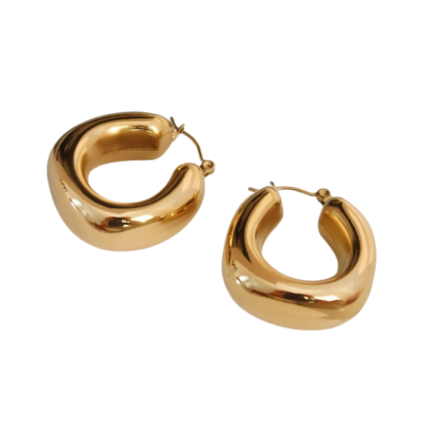 Add a playful touch to your look with these 18k gold plated U-shaped hoop earrings. Their chunky, statement design combines classic elegance with a fun, bold vibe. Crafted to resist tarnish, they offer lasting shine and durability—perfect for elevating any outfit with an eye-catching, cute accessory.