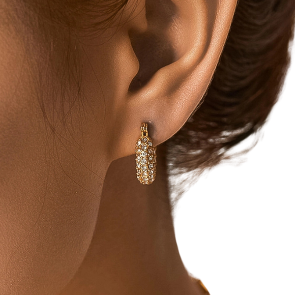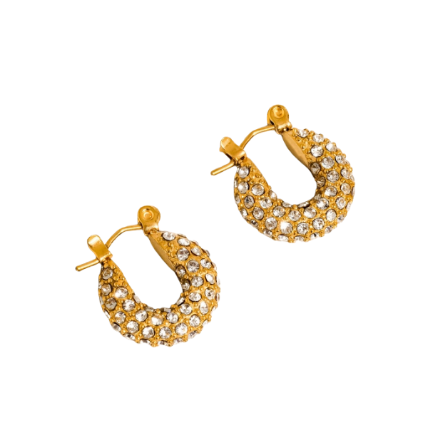 Add a touch of sparkle to any outfit with these 18k gold plated hoop earrings. Featuring dazzling CZ stones, they offer a delicate yet eye-catching look that stays vibrant without tarnishing. Perfect for everyday wear or special occasions, these lightweight hoops combine elegance with playful charm, making your style effortlessly shine.