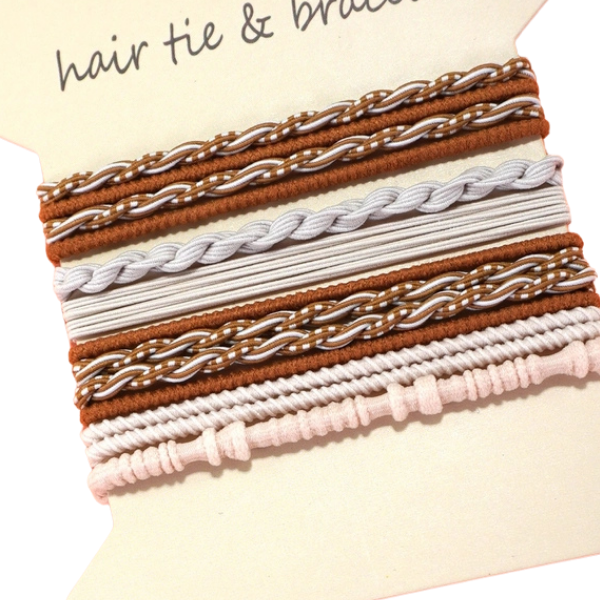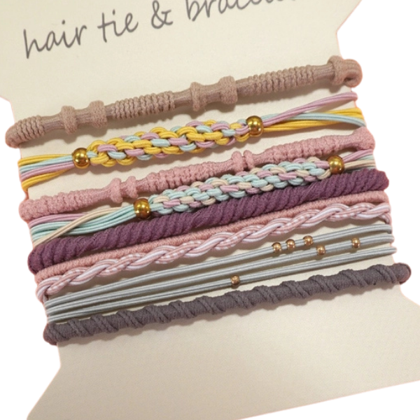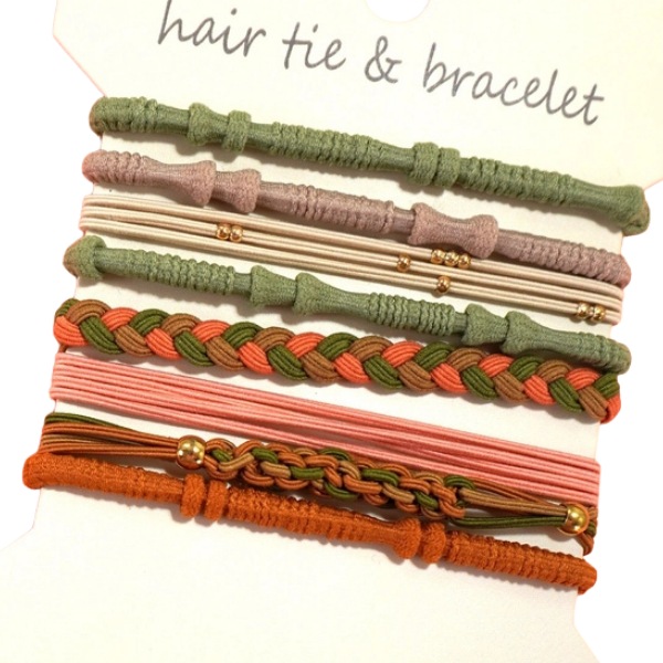 Add a playful touch to your daily look with this set of 8 boho-inspired bracelet hair ties. Perfect for keeping your hair stylishly secured while doubling as charming wrist accessories, they blend function and fashion effortlessly. Durable and comfortable, these hair ties are ideal for everyday wear, adding a cute and fun vibe to any outfit. Elevate your accessory game with this versatile set that keeps you ready for any occasion.