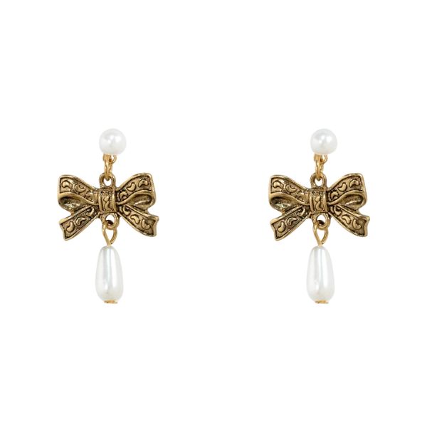 Elevate your look with these Antique Gold Bow & Pearl Earrings, a charming blend of vintage elegance and modern daintiness. Their delicate bow design paired with lustrous pearls adds a subtle statement that complements any outfit, making them perfect for both everyday wear and special occasions. Embrace timeless beauty with a playful twist that captivates attention effortlessly.
