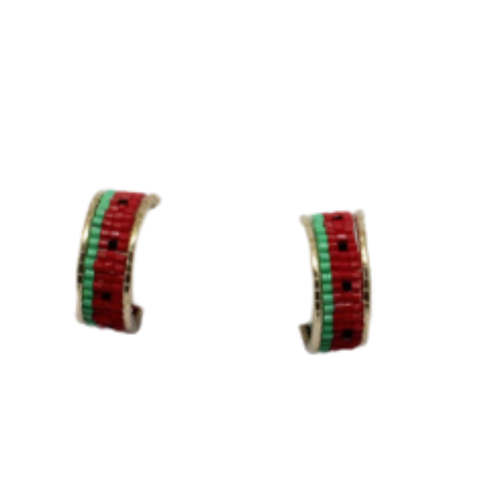Beaded Watermelon Hoop Earrings