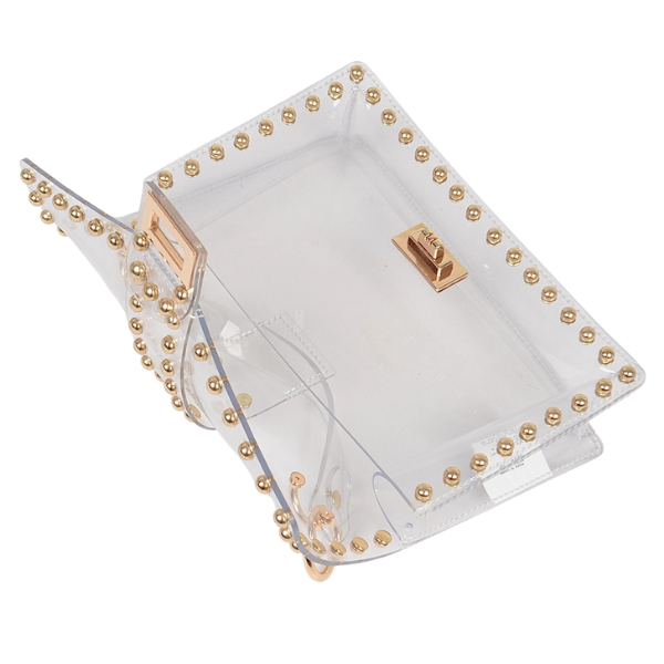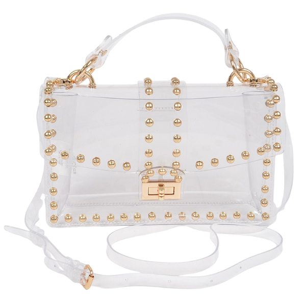 Get game day ready with the Clear Studded Crossbody Bag, a cute and fun accessory that’s also a practical staple. Its clear design makes security checks a breeze, while the studded details add a stylish touch. Lightweight and hands-free, it’s perfect for carrying your essentials comfortably as you cheer on your team. Make every game day hassle-free and fashionable with this must-have bag.