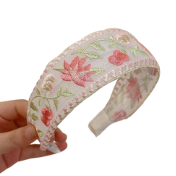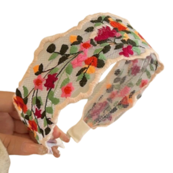 Embroidered Flower Sheer Flat Headband