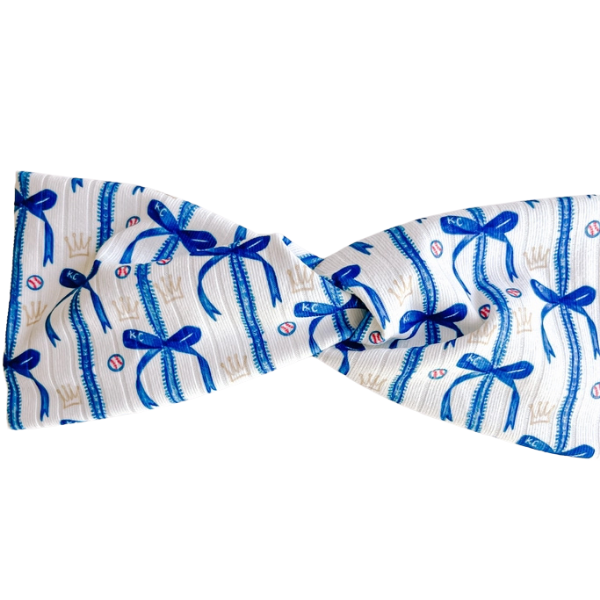 Show your Kansas City pride with this adorable Evie Pearl Blue Bows Twisted Turban Headband! Perfect for those sweltering game days when you need to keep your hair stylishly off your face. The cute bow details add a playful touch to your Royals outfit while the comfortable twisted design ensures it stays put through all the cheers and celebrations. Don't let the heat stop you from looking your best!