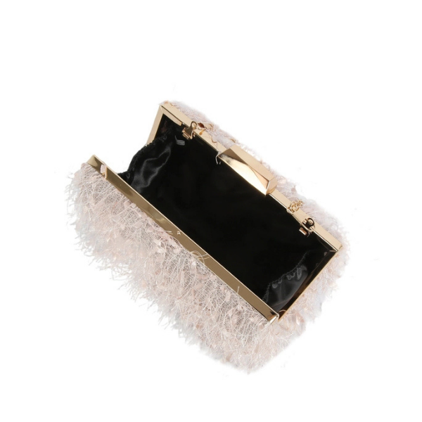 Elevate your evening look with this stunning Feather Fringe Clutch Bag, where luxe meets movement. The delicate feather fringe adds an undeniable touch of glamour and sophistication, while the included chain strap offers versatile styling—carry it as a clutch or wear it crossbody for hands-free convenience. Perfect for cocktail parties, weddings, or nights out, this statement piece transforms any outfit into something memorable. Compact yet spacious enough for essentials, it's the finishing touch that makes you feel confident and chic.