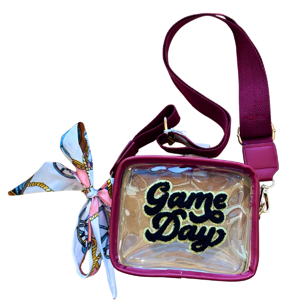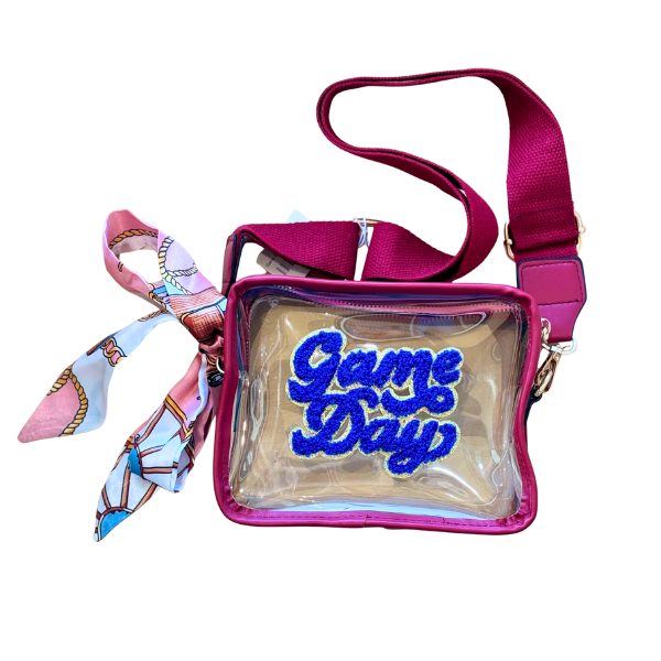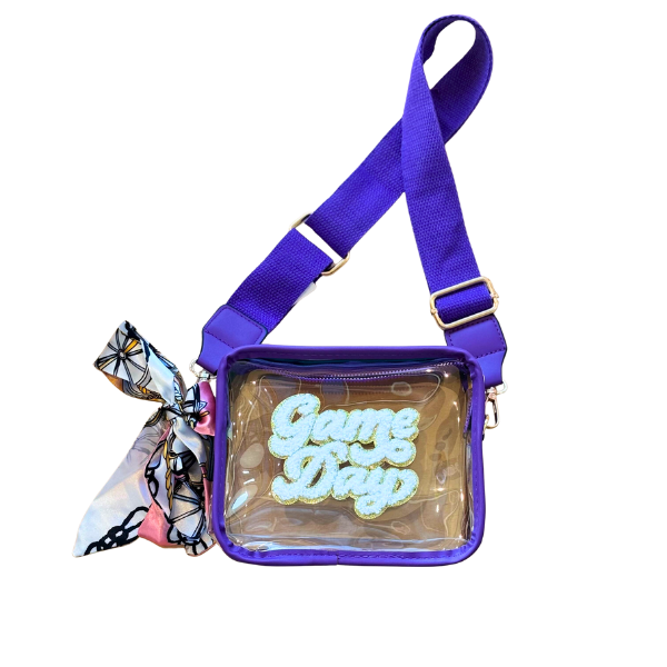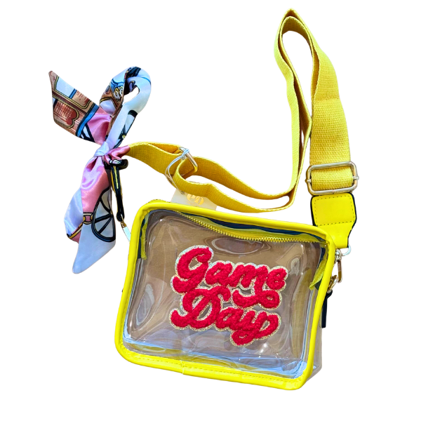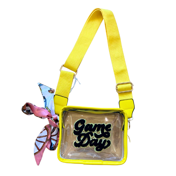 Cheer on your team in style with the 'Game Day' Patch Clear Crossbody Bag. Perfectly sized for stadiums, college games, and NFL events, this fun and cute bag keeps your essentials secure and visible for easy access. Its clear design meets venue requirements while adding a playful touch to your game day outfit. Stay hands-free and ready to celebrate every touchdown with this must-have accessory.