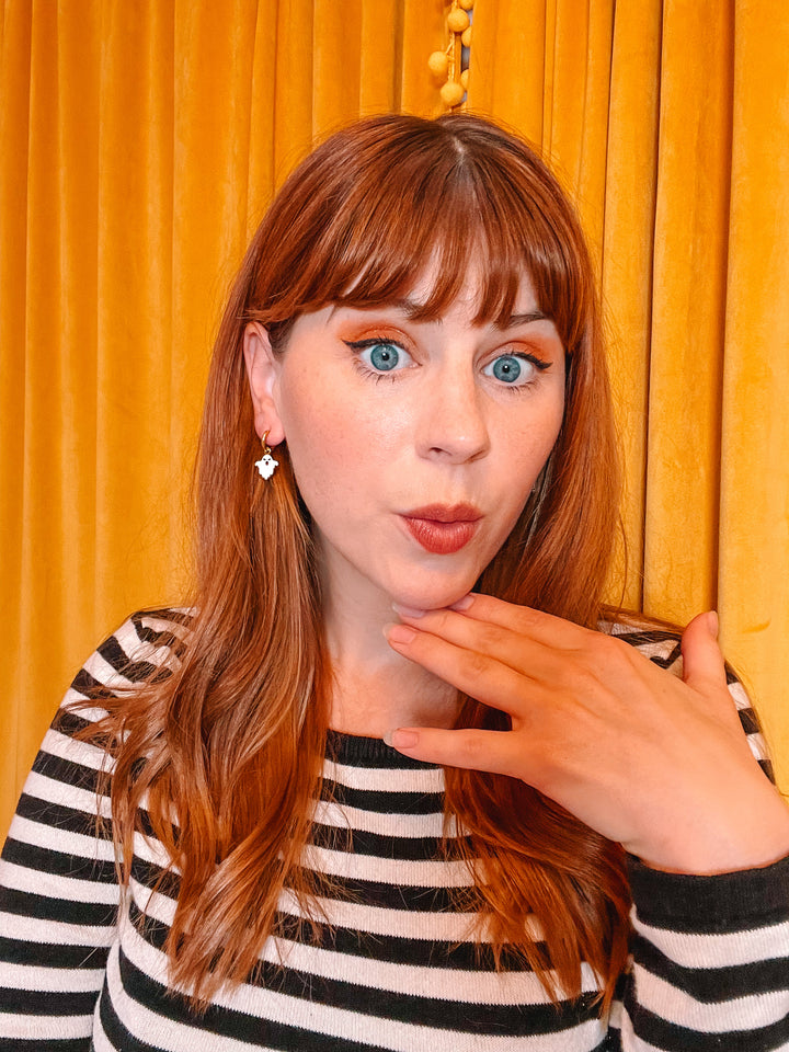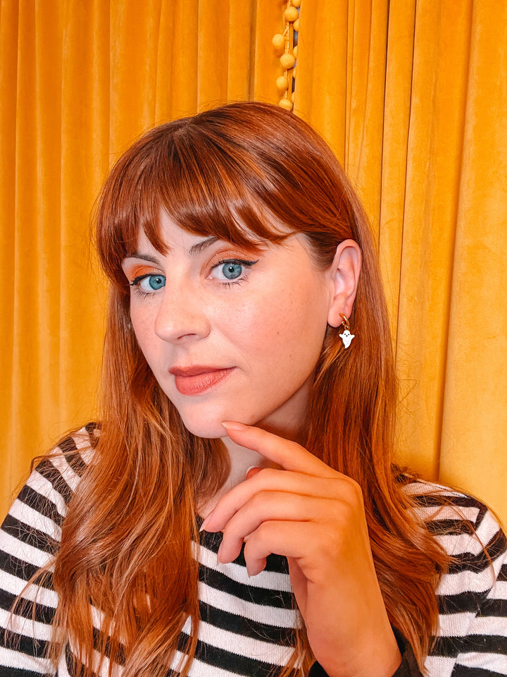 Easily spook up your style with our Ghost Charm Huggie Hoop Earrings! These Halloween-themed earrings are not only fun and cute, but also charming and add a little something extra to any outfit. Perfect for any playful fashionista (or ghost hunter)!