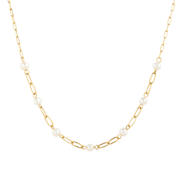Add a touch of charm to your daily look with the Pearl & Chain Station Necklace. Its delicate pearls combined with a sleek chain create a playful yet elegant accessory perfect for any occasion. Lightweight and versatile, this necklace effortlessly enhances your everyday style with a subtle sparkle that draws compliments. Elevate your jewelry collection with this fun and cute piece designed to brighten your day.