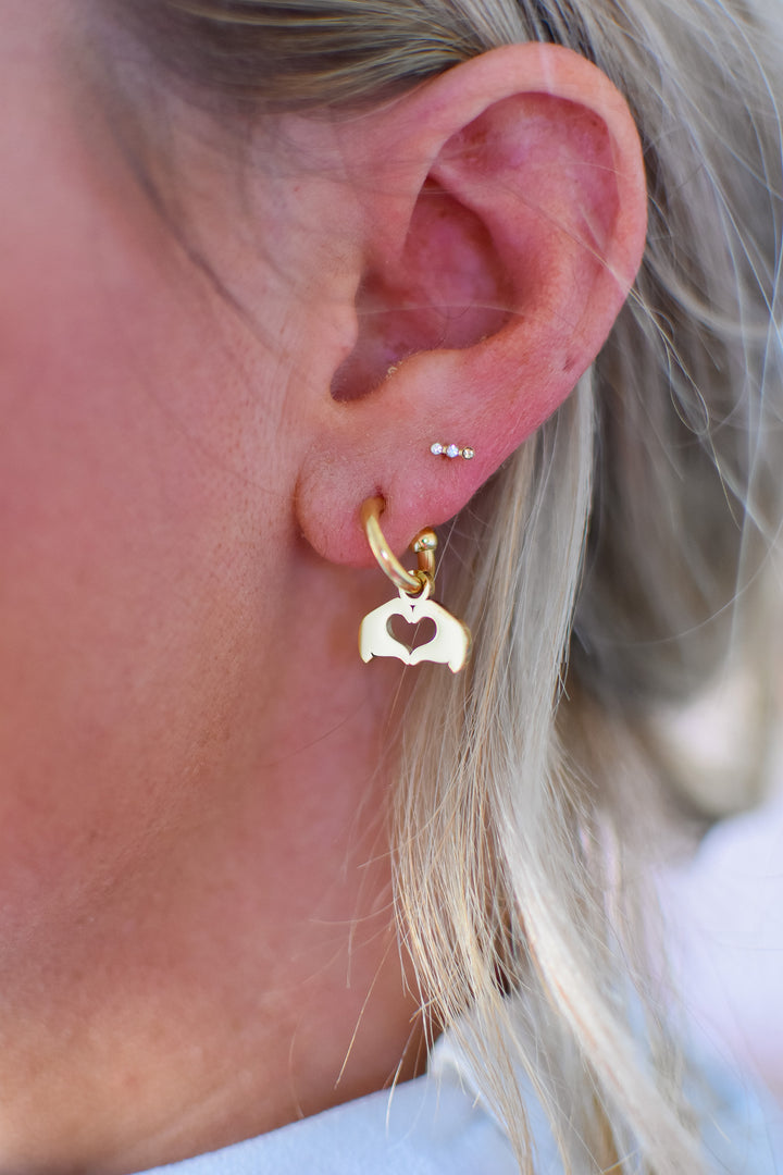 Heart Hand Huggie Hoop Earrings