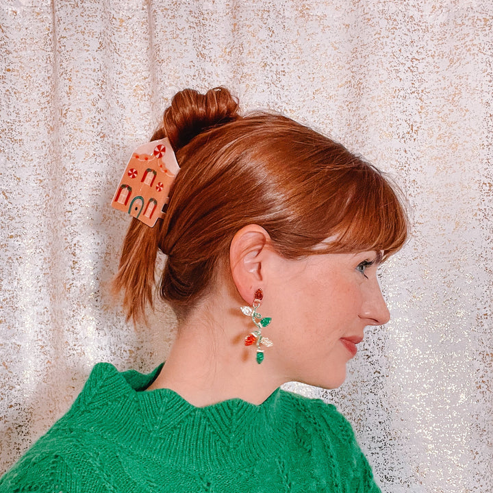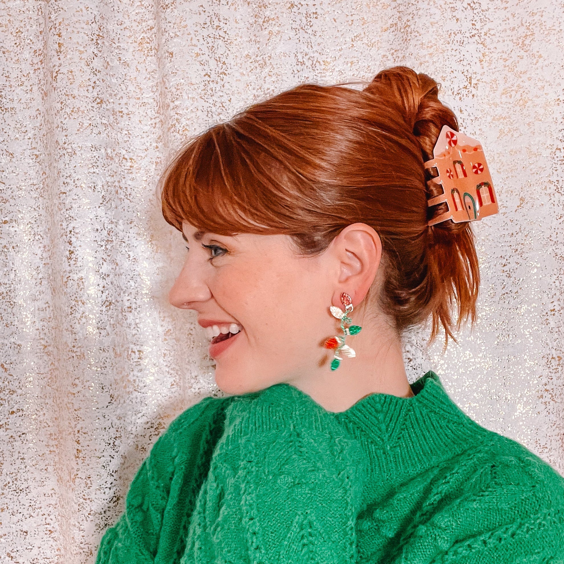 Celebrate the season with these enchanting pink gingerbread house claw clips! Designed to capture holiday magic, these festive accessories feature an irresistibly cute gingerbread house that instantly elevates your seasonal style. The sturdy claw mechanism secures your hair effortlessly while adding a delightful pop of festive flair. Whether you're attending holiday gatherings, or creating cozy winter looks, these charming clips are the perfect way to express your festive spirit. Make every day feel like a holiday celebration!