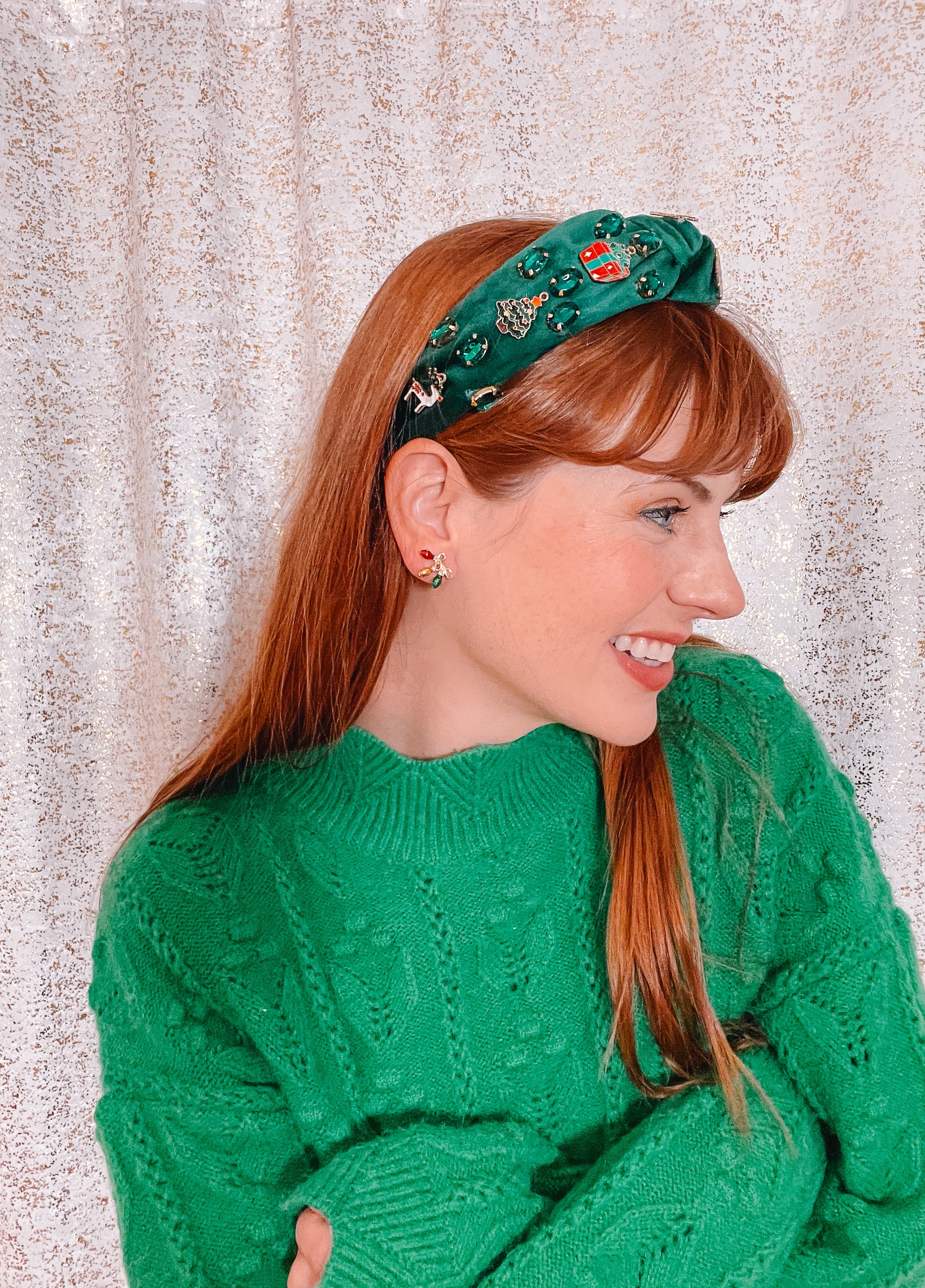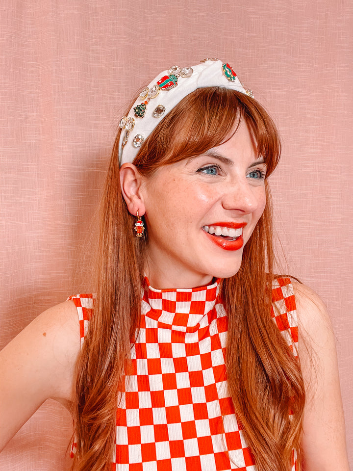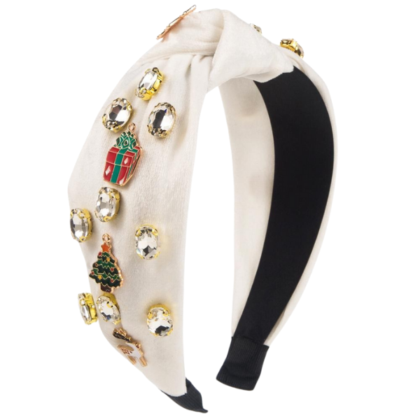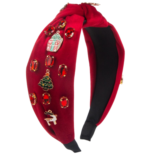 Holiday Velvet Top Knot Headband w/Charms & Rhinestones