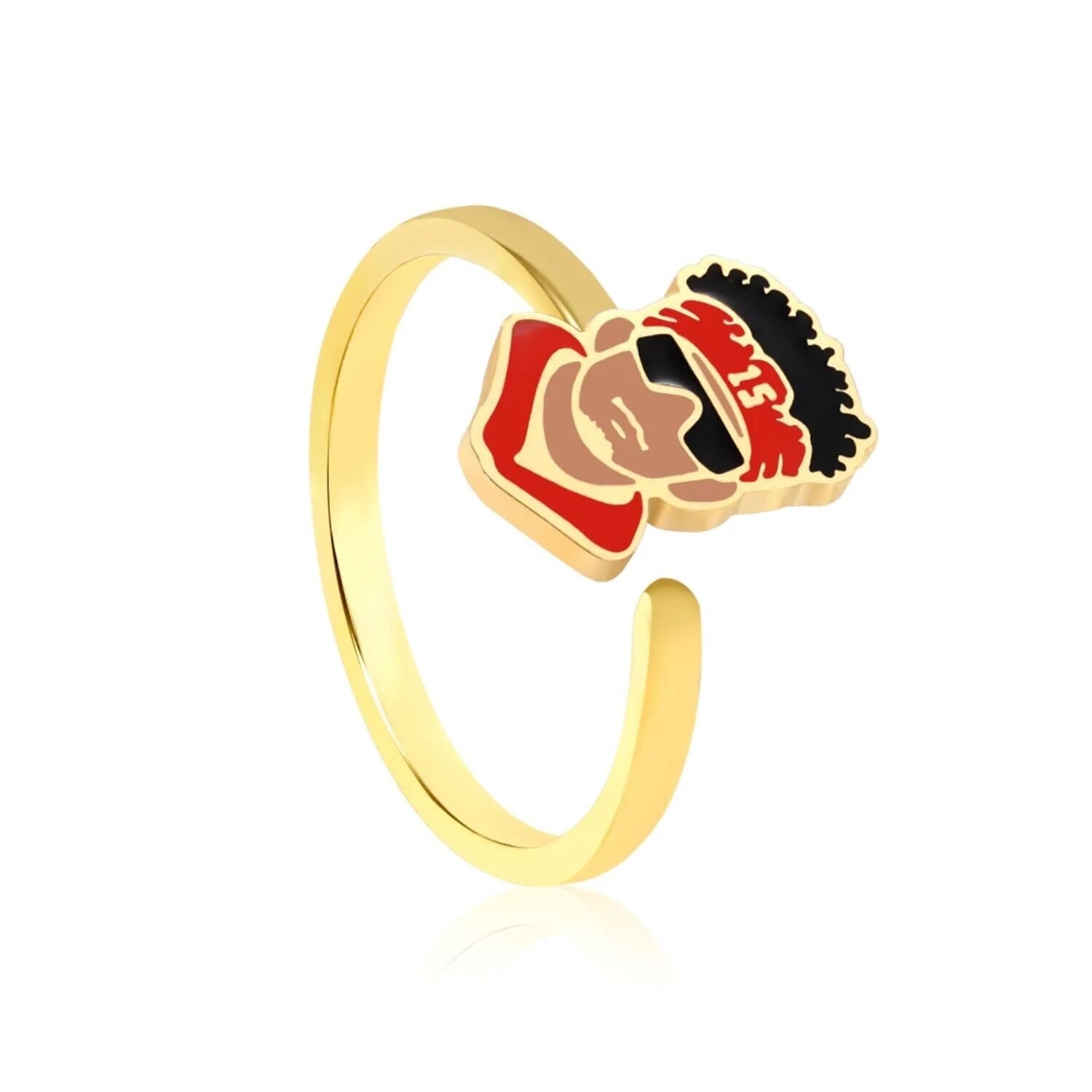 Score a touchdown with the Kansas City Quarterback Profile Ring! Represent the Kansas City Chiefs on gameday while showing off your fun and cute style. Perfect for all you Mahomies out there, this ring is a must-have for any Chiefs fan.