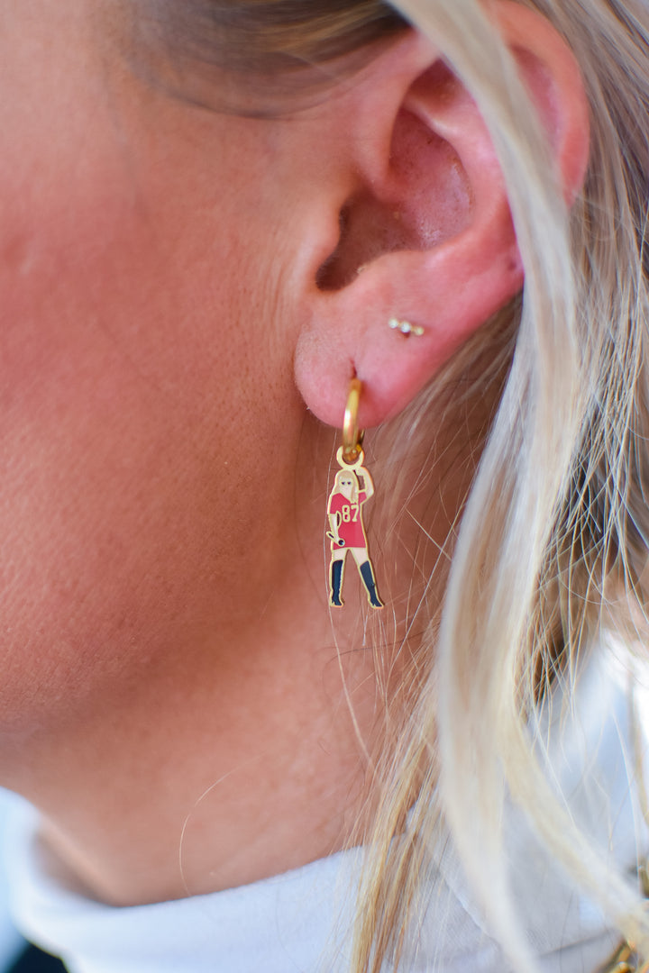 Kansas City #87 Tight End & Taylor Swift Huggie Hoop Earrings