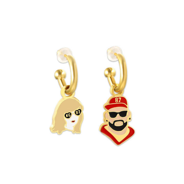 Show your love for Taylor and Trav with these adorable Kansas City #87 Huggie Hoop Earrings. Perfect for gameday or a concert, these fun and quirky earrings will add a playful touch to any outfit. A must-have for any fan!