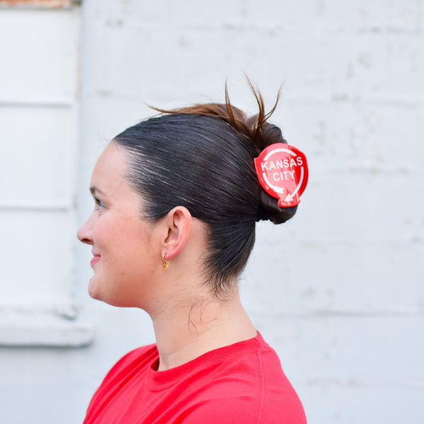 Clip your hair in style with the Kansas City Auto Sign Claw Clip. Sporting an iconic Kansas City landmark, this hair clip is perfect for everyday use. No more bad hair days! (Don't be a bad hair-sayer, get this clip now!)