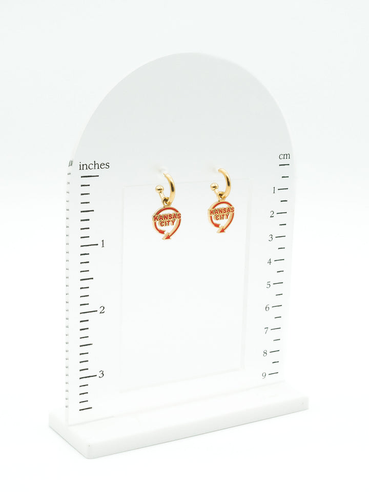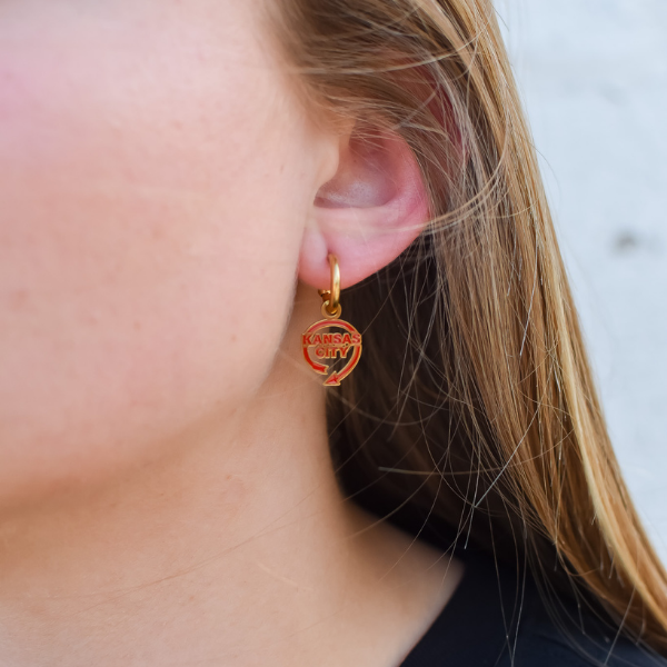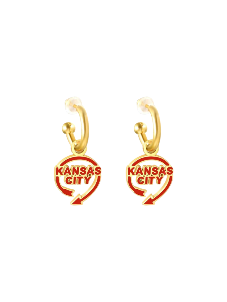 These Kansas City Auto Sign Huggie Hoop Earrings will add a touch of whimsy to your outfit. Featuring the iconic Kansas City landmark, these earrings are not only cute but also a fun way to show off your love for the city. Get ready to turn heads and receive compliments!