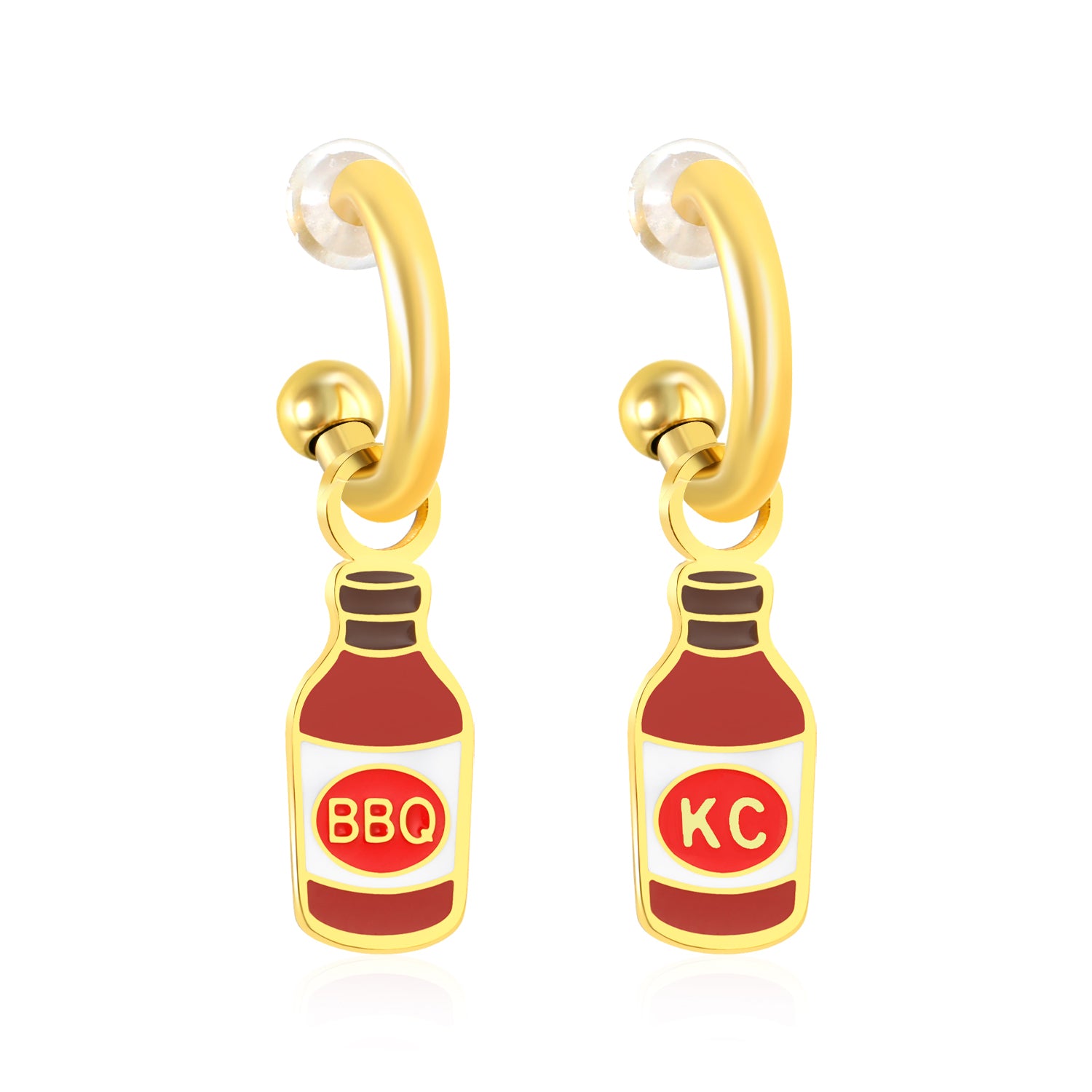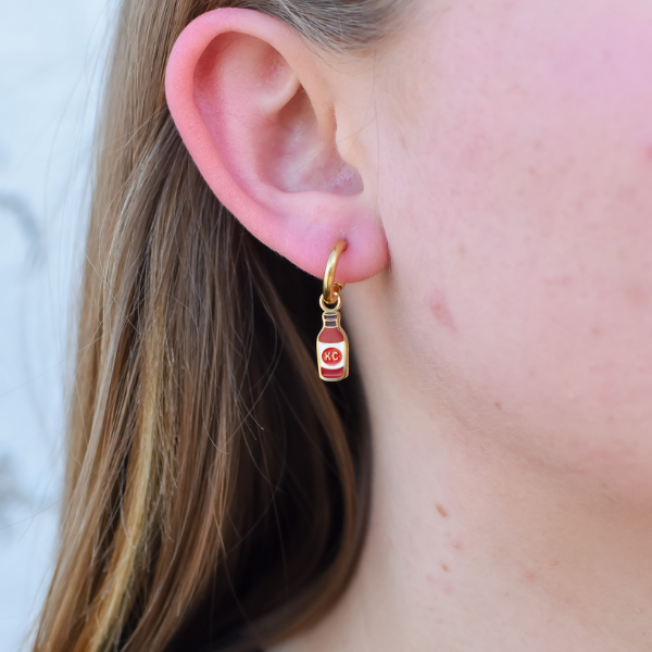 Turn heads with our Kansas City BBQ Bottle Hoop Earrings! These cute and fun hoops pay tribute to the iconic KC BBQ, making them a must-have for all Kansas City natives and BBQ lovers. Show off your love for this staple cuisine in a stylish and unique way.