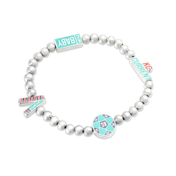 Show your team spirit with the Kansas City Current Silver Beaded Bracelet. This fun and stretchy accessory adds a cute touch to your game day outfit while keeping comfort in mind. Featuring stylish silver beads and vibrant teal accents, it’s perfect for fans of all ages, including KC Baby supporters. Celebrate Teal Town pride wherever you go with this must-have bracelet that effortlessly blends fashion and fandom.