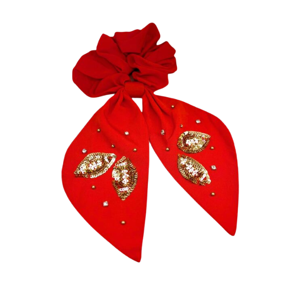 Get ready for game day in style with the Kansas City Gold Sequin Football Scrunchie! The gold sequins add a touch of glamour to your game day fit, making it a fun and trendy addition to your hair. Don't miss out on this unique and playful accessory for your next game day (or any day)!