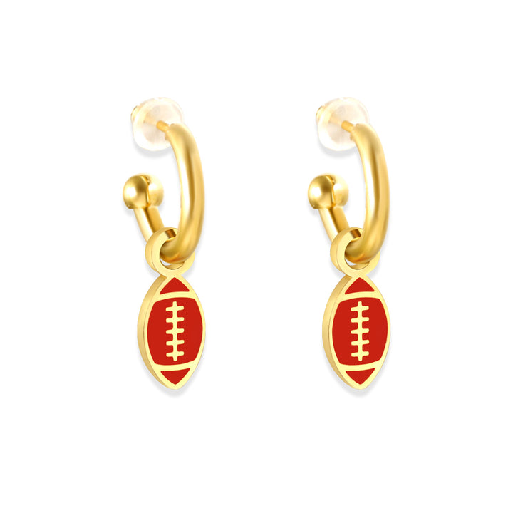 Kansas City Red & Gold Football Charm Hoop Earrings