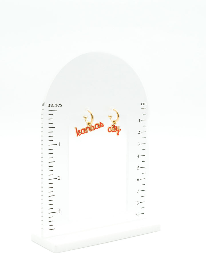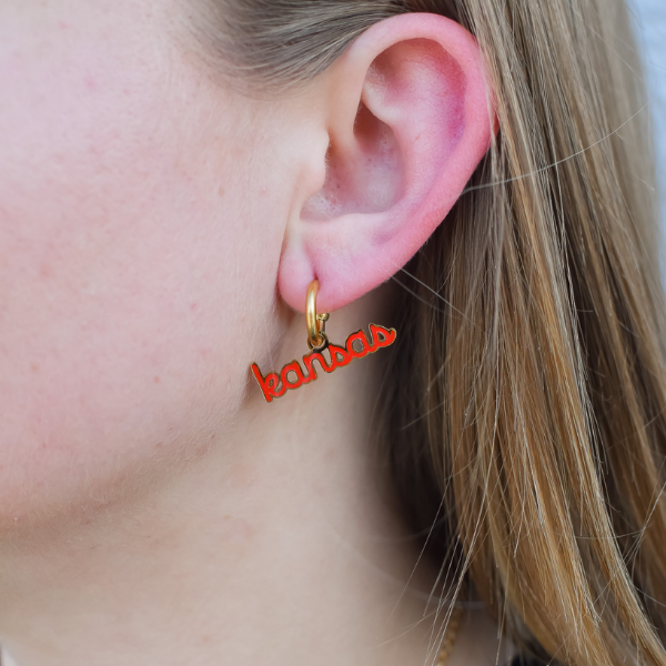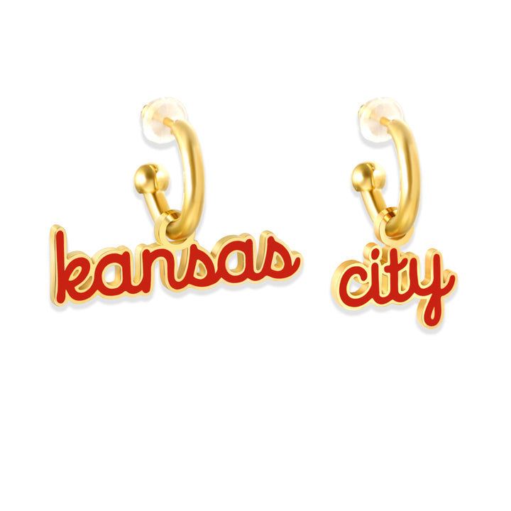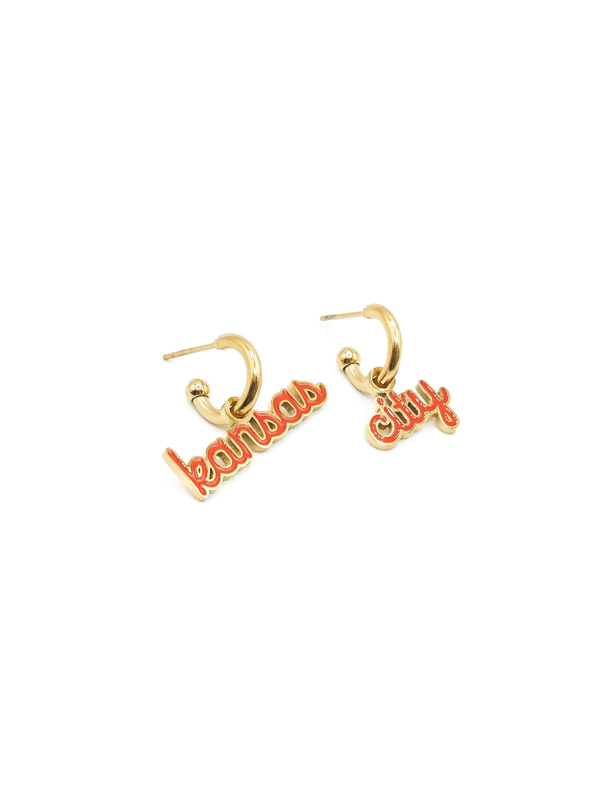 Spread KC love with these cute, fun huggie hoop earrings featuring a bold red script. Perfect for showing off your playful and quirky side.