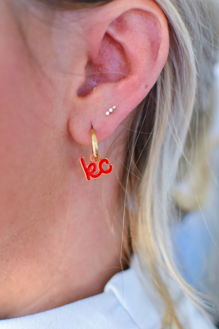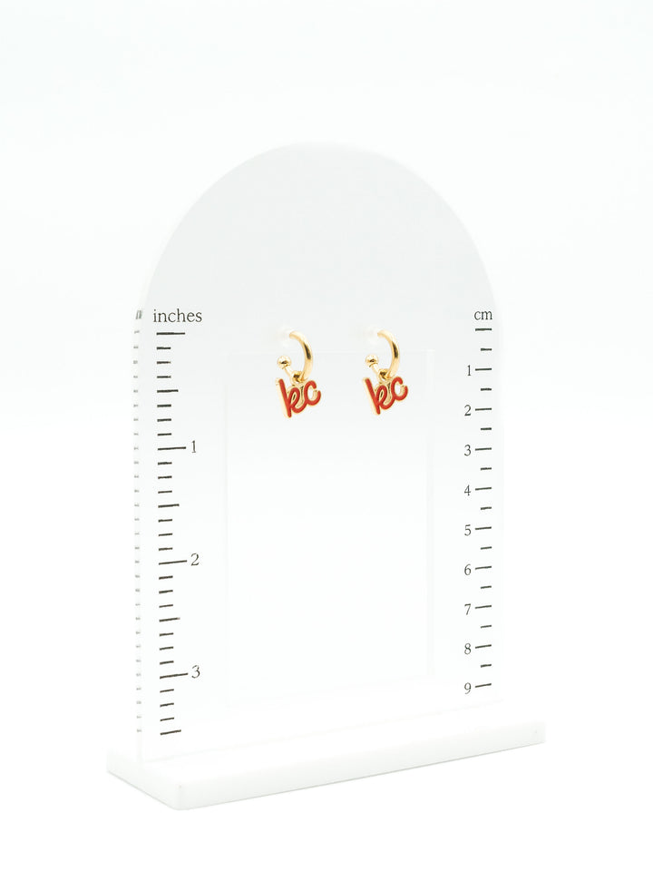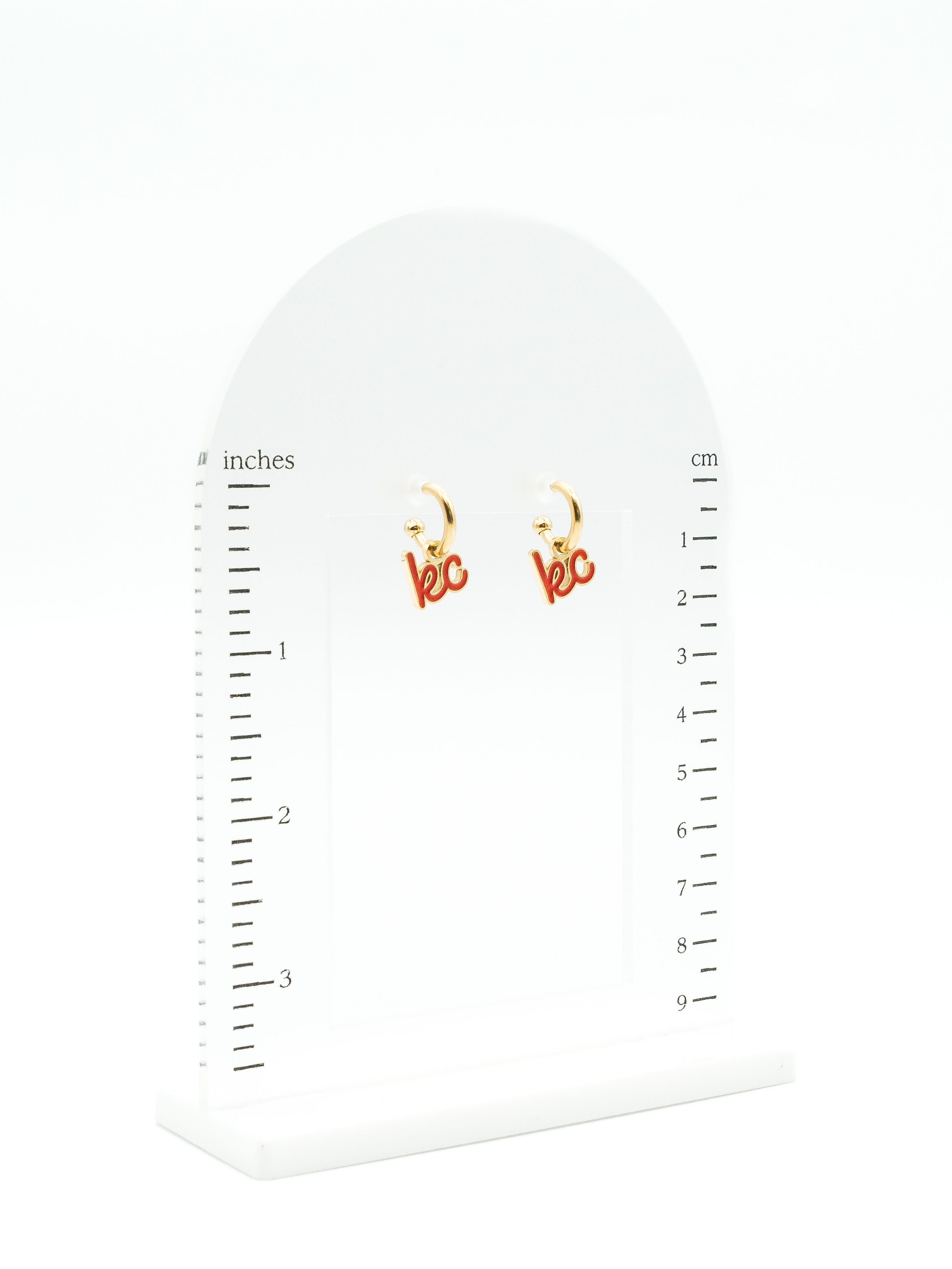 Kansas City Red Script Charm Huggie Hoop Earrings