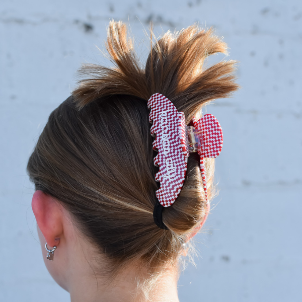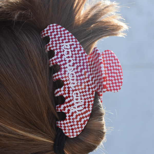 Add a playful touch to your hairstyle with the Kansas City Red & White Checkered Claw Clip. Its fun, eye-catching pattern lets you show love for Kansas City while keeping your hair stylishly secured. Perfect for adding a cute and vibrant accent to any look, this claw clip combines practicality with spirited charm. Elevate your hair game and celebrate your city with every wear.