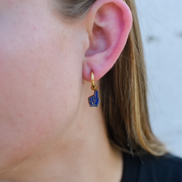 Cheer on your favorite team in style with our Kansas City Royal Blue Foam Finger Earrings! These cute and dainty earrings are perfect for any fan looking to show their support in a fun and unique way. Let your fandom shine with these must-have accessories!