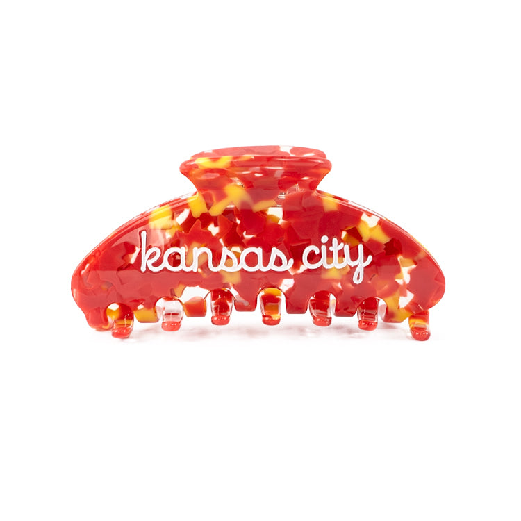 Rock that KC spirit with every hair flip! This tortoise claw clip combines the classic tortoiseshell pattern with bold red and yellow Kansas City script—a total vibe for locals and fans alike. Lightweight yet sturdy, it secures all hair types without the slip, giving you that chic, effortless hold. Perfect for game days, casual outings, or whenever you want to rep your city with style.