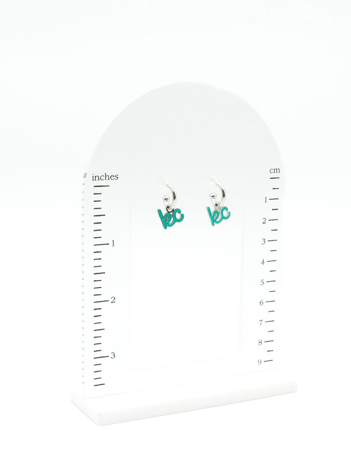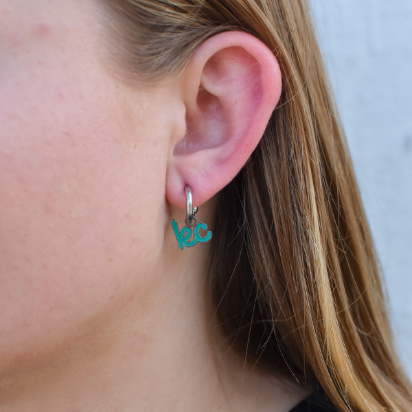 Embrace the charm (literally) of these Kansas City teal script huggie hoop earrings. With a cute and simple design, they add a fun touch to your everyday look. Perfect for the playful and fun-loving fashionista (or just anyone who wants to add a little quirk to their outfit).