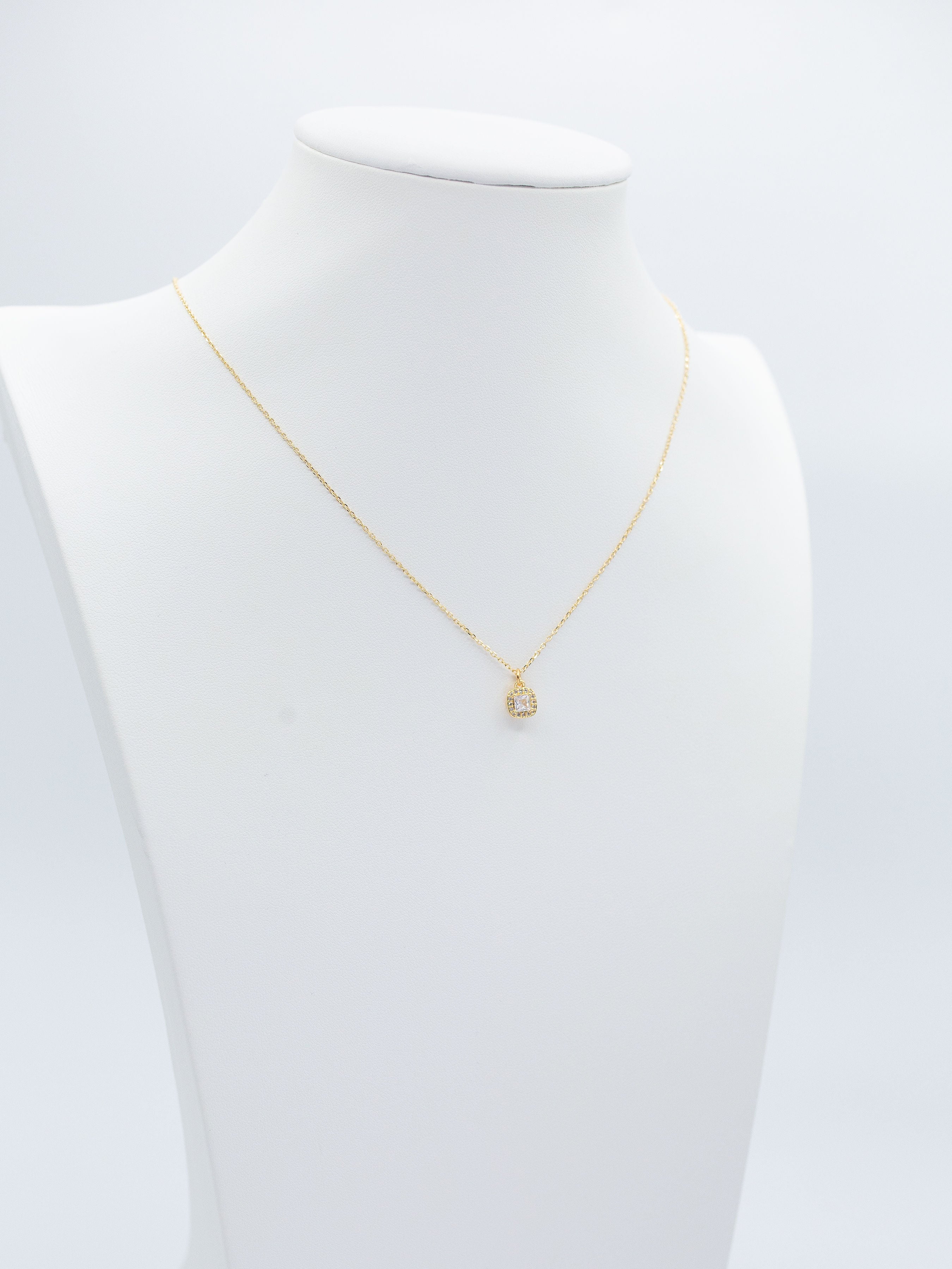 Add a touch of cuteness and sparkle to your everyday look with our LA Small Cushion Cut CZ Pave Necklace. This dainty piece is perfect for daily wear, making it a must-have addition to your jewelry collection. Don't miss out on this playful and stylish accessory!