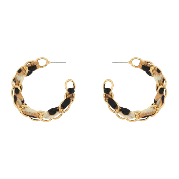 Add a wild touch to your look with these Leopard Scarf Chain Hoop Earrings—where playful pattern meets elegant flair. Perfect for turning heads and sparking compliments, they bring fun, effortless style to any outfit.