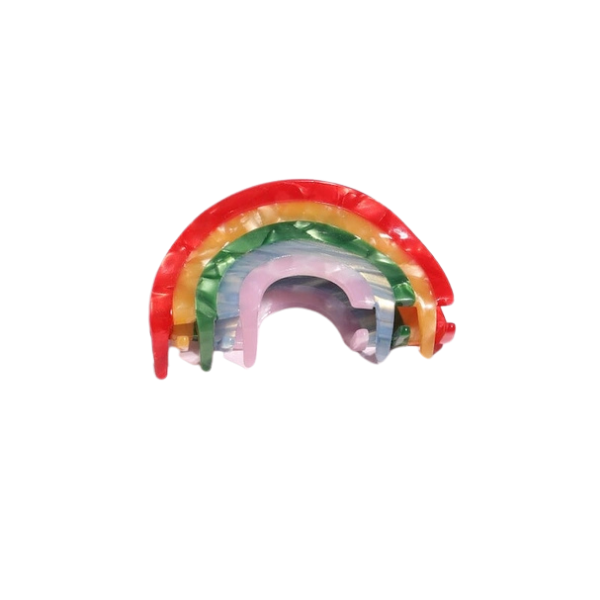Add a splash of color and charm to your hairstyle with the Open Acrylic Rainbow Claw Clip. This cute and fun accessory securely holds your hair in place while showcasing a vibrant rainbow design. Perfect for everyday wear or special occasions, it combines style and practicality effortlessly. Elevate your look with this playful claw clip that’s as reliable as it is eye-catching.