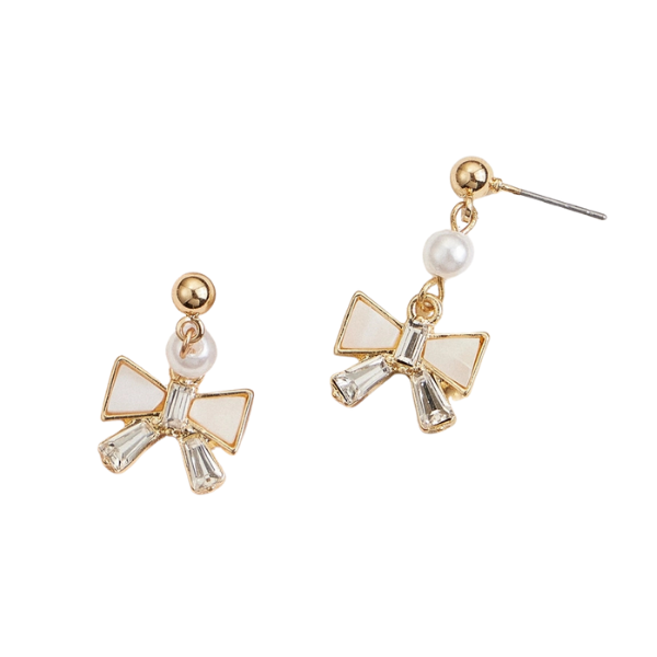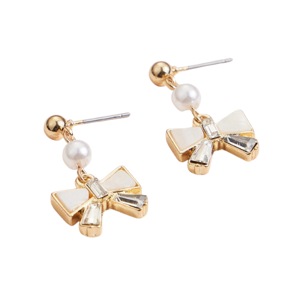 These Pearl & Crystal Bow Stud Earrings bring a cute and fun charm to your jewelry collection. Featuring a delicate bow design adorned with shimmering crystals and a lustrous pearl, they add a touch of elegance and playfulness to any outfit. Perfect for everyday wear or special occasions, these studs offer a subtle sparkle that brightens your look with effortless style.