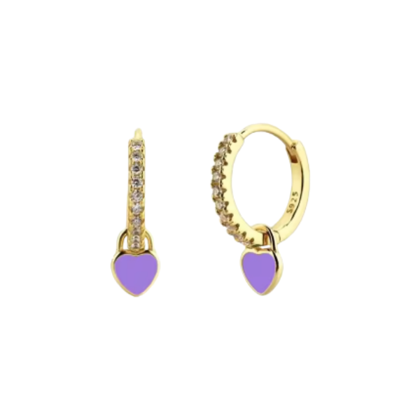 Add a pop of color to any outfit with these cute and fun Purple Heart Charm & Rhinestone Hoop Earrings. The colorful rhinestones add sparkle while the heart charm infuses a touch of sweetness. A staple in your jewelry collection, these earrings are sure to brighten up your day and any look!