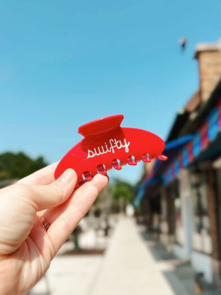 Take a grip with the Red Swifty Claw Clip! This fan-like claw clip is the perfect accessory for anyone looking to keep their hair simple and stylish. Go ahead and give it a try, you'll be a Swifty convert in no time!