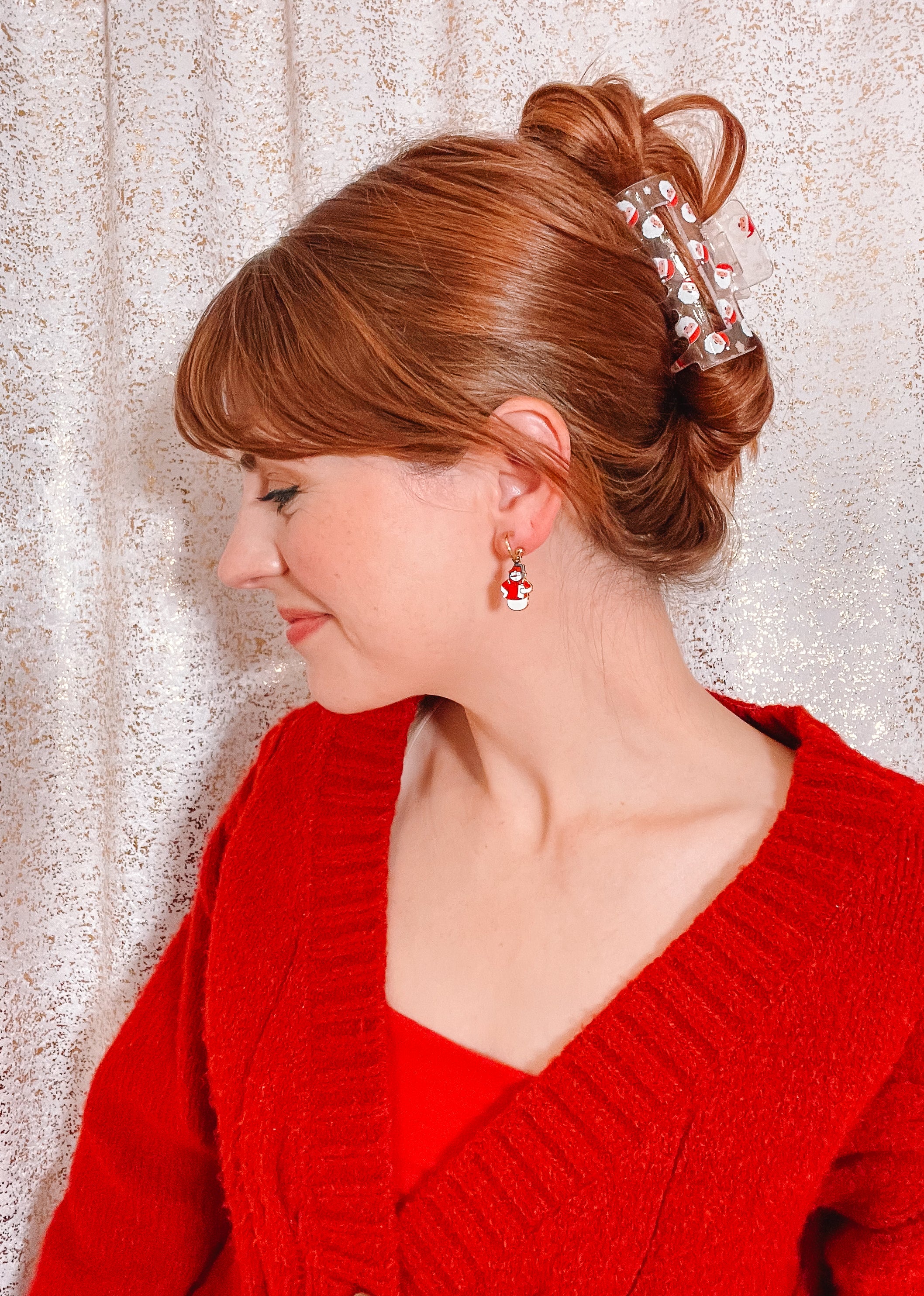Hold your hair in festive style with the Santa 4 Dayz Claw Clip. This adorable medium-sized rectangle clip combines holiday charm with everyday practicality. Lightweight and comfortable for all-day wear, it keeps your hair secure without the weight or damage of traditional clips. Perfect for adding a touch of seasonal spirit to any hairstyle, whether you're heading to a party or just spreading Christmas cheer. Make this cute claw clip your go-to accessory this holiday season.