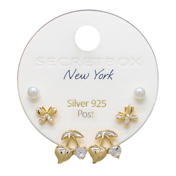 Secret Box NY Rhinestone Cherry Sterling Silver Post Earrings Set