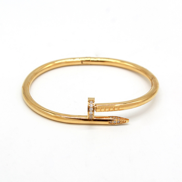 Elevate any outfit with the Secret Box NY Stainless Steel Nail Bracelet. This adorable and versatile piece is a must-have staple in your jewelry collection. It adds a fun and playful touch to your look and is perfect for everyday wear. Crafted with durable stainless steel, it's a cute and stylish statement that will last.