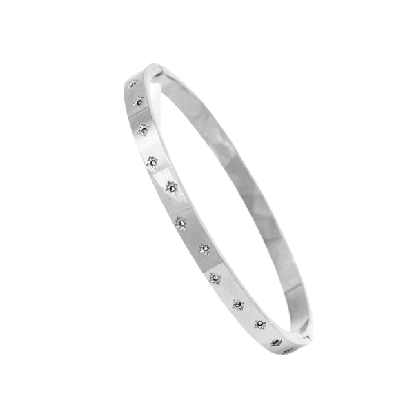 Add a touch of cuteness to any outfit with our Secret Box NY Stainless Steel Star CZ Bracelet! This fun and stylish bracelet is the perfect staple piece for any jewelry collection. Made with high-quality stainless steel and adorned with sparkling CZ stones, it's sure to become your new go-to accessory.