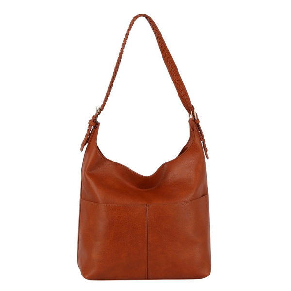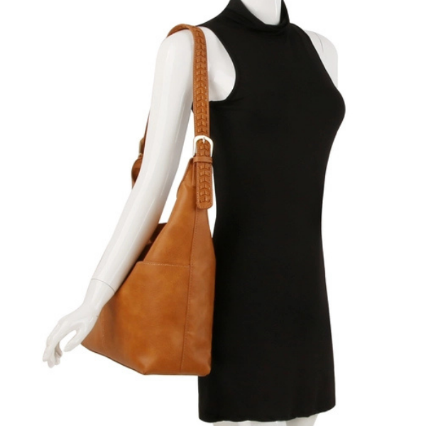 Soft Hobo Bag w/Front Pockets & Braided Strap