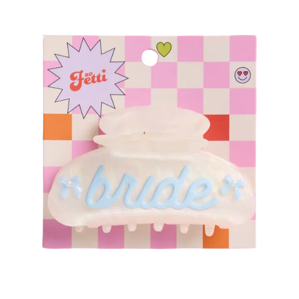 Get ready for your bachelorette party with the 'Something Blue' Bride & Bows Claw Clip! This cute and fun accessory will add a touch of style to your getting ready process. Perfect for any bride-to-be who wants to feel confident and fabulous on her special day.