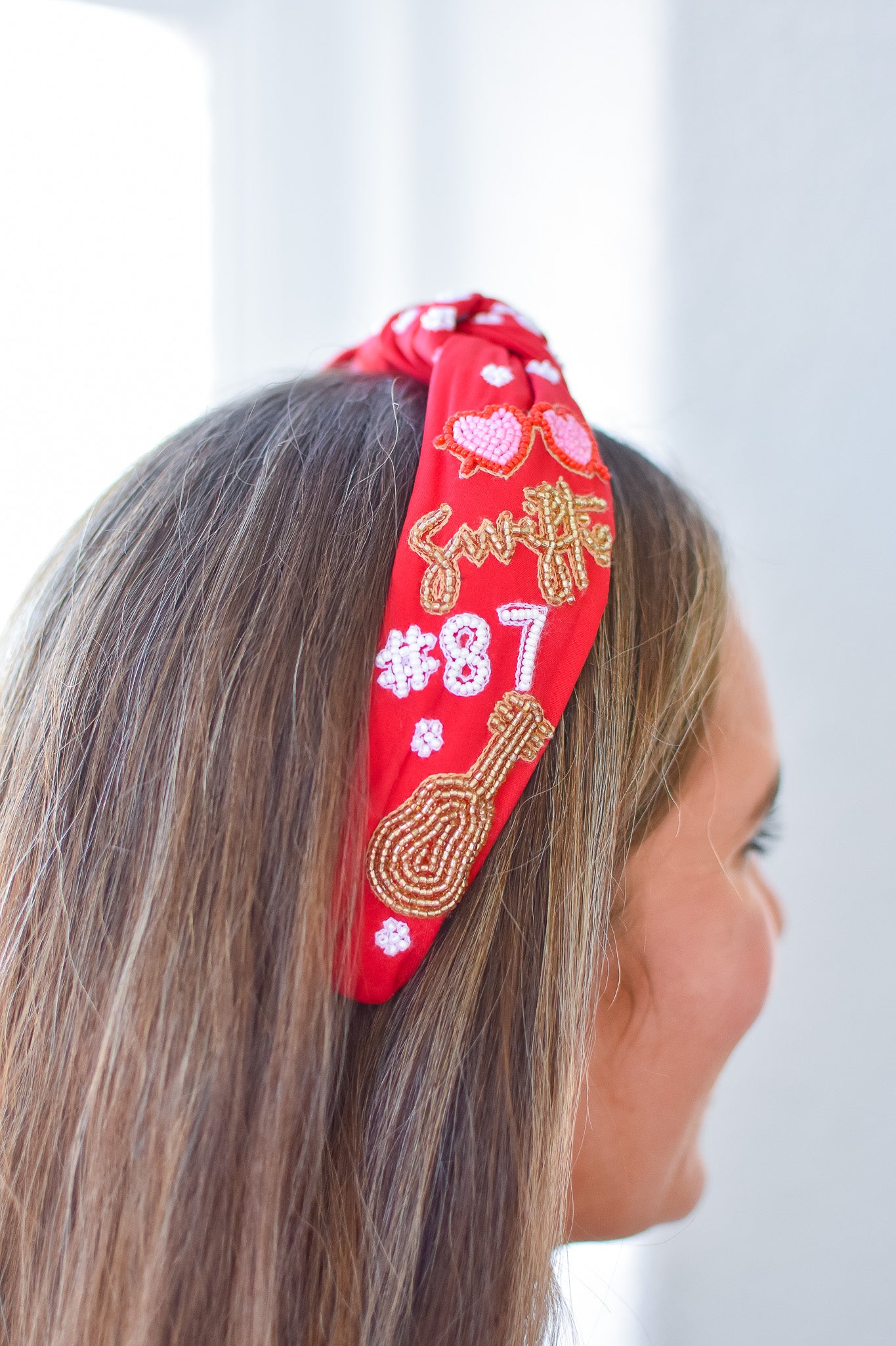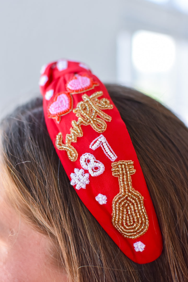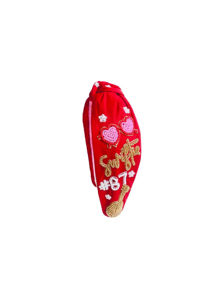 Swifty & #87 Red Beaded Headband