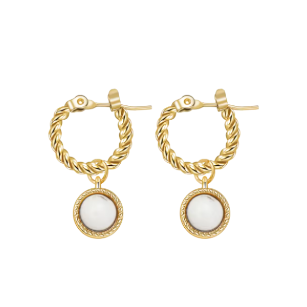Unleash your inner fashionista with our White Stone Charm On Twisted Hoop Earrings! These cute and fun earrings are perfect for everyday wear and will become a staple piece in your jewelry collection. Add a touch of personality to any outfit and make a statement with these unique earrings.